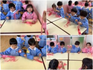 すずらんテープを自分でさいてしっぽの完成🌟