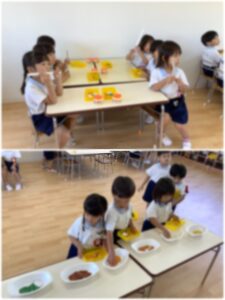 今週は、クラスでバーベキュー遊びをしました🍖🫑🥕🍴