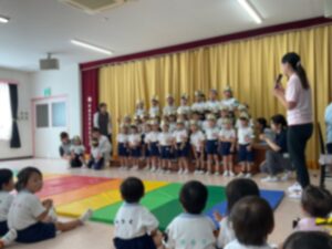 8月 29 2025 未分類 今週の様子 年少🎈 今週の様子をお届けします!💌 🐳体操教室〜プール〜🐳 今回の体操教室はプールで遊びました🚿 水を掛け合ったり、生き物になりきって水の中を走ったりと大はしゃぎで たくさん身体を動かして楽しく遊んでくれていました🎶 🎂お誕生日会🎂 8月のお誕生日会には“マイケルおじさん”が遊びに来てくれました🤡 風船や紙飛行機、じゃんけん大会など子ども達はとても楽しそうな様子で 終始、大盛り上がりでした😆🙌 来週から9月🌕 また元気に来てくれるのを待ってますね💕 未分類 年長 黄色帽子🟡🧢 青帽子🧢今週の様子