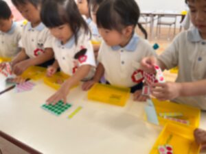 9月 12 2025 未分類 今週の様子 年少🎈 今週はおにぎりのシール貼りをしました🍙 おにぎりの具を何にしようか考えながらお買い物をして、シールを貼り たくさんの美味しそうなおにぎりが完成していました✨ 完成したおにぎりをみんなで食べてピクニック気分も味わってみましたよ🔆 未分類 年長 黄色帽子🟡🧢 青帽子🧢今週の様子