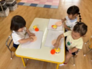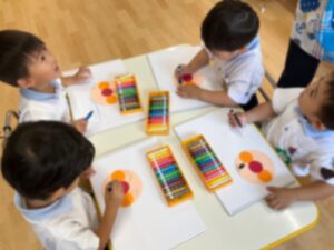 アンパンマンのお顔を自由画帳に貼りました‼️