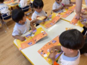 10月 10 2025 未分類 満3.2歳今週の様子🐣 《月刊絵本シール貼り》 可愛いくハロウィン🎃の ページが出来上がりました👻 《ハロウィン製作🎃》 2色の絵の具でカボチャの色を付けて、 目、鼻、口などを貼って完成です♪ 3連休沢山リフレッシュして 火曜日からお待ちしております⭐️ 未分類 今週の様子 年少🎈 今週の様子 年少🎈