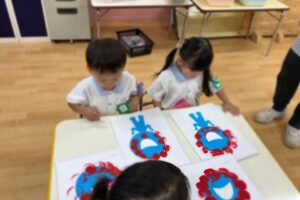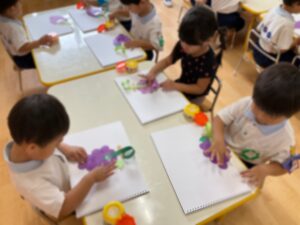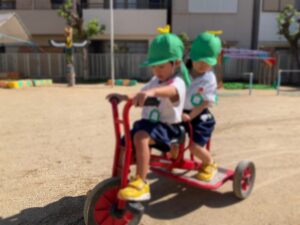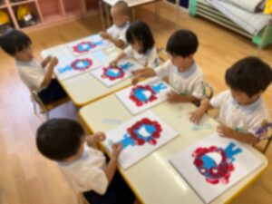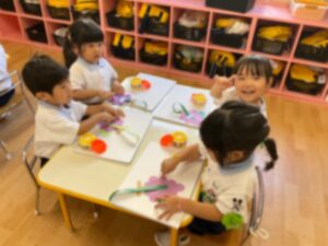 10月 17 2025 未分類 満3、2歳今週の様子🐣 今週はミャクミャク製作をしました✨ 風船🎈の技法でミャクミャクのお顔を 作り、目と口を貼って完成させました♪ 「ふわふわする」「丸いっぱい」と楽しんで取り組んで くれていました😊 前回作ったぶどう🍇をのりで自由画帳に 貼りつけました⭐️ のりの約束をもう一度確かめて 上手に貼る事が出来ました👏🏻 お外遊びも沢山して毎日楽しく過ごしています✨ 来週も元気に登園してくれるのを お待ちしております😊 未分類 年長 黄色帽子💛🌼 年長 黄色帽子🧢🌼