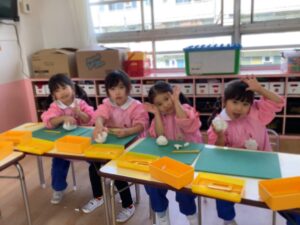 全ての粘土を使って、捏ねたり伸ばしたりと力を込めてとても真剣な様子でした🤨🎓