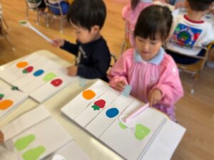 先週の続きで1人ずつあおむしを作って、