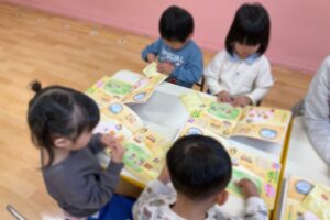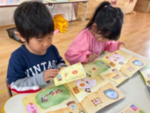 月刊絵本のシール貼りや、