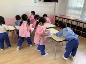 ロッカーや机・椅子、床や靴箱など、雑巾を使ってお掃除をしました🧽🫧