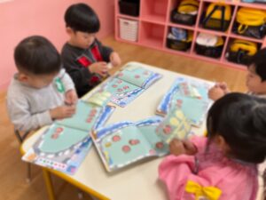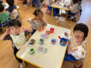 お誕生日会🎂では、「きんぎょがにげた」のお話を見て、