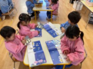 《月刊絵本のシール貼り》