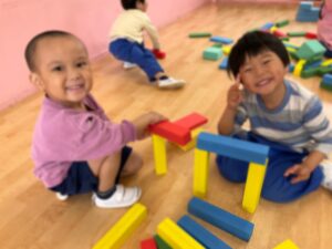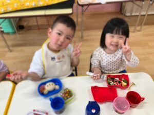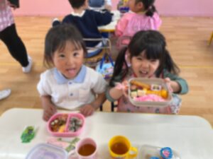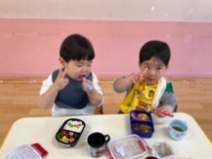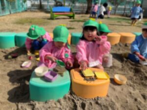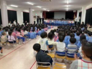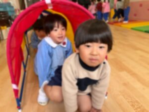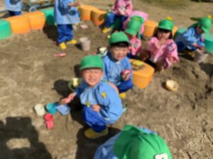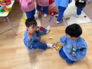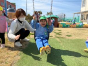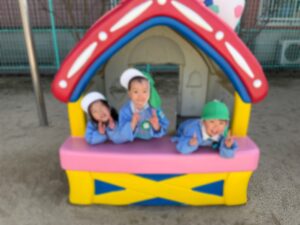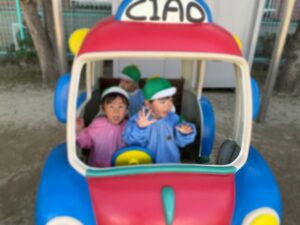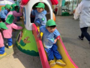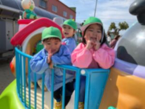 バスに乗って、みんなで姉妹園の若竹保育園へ