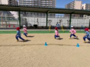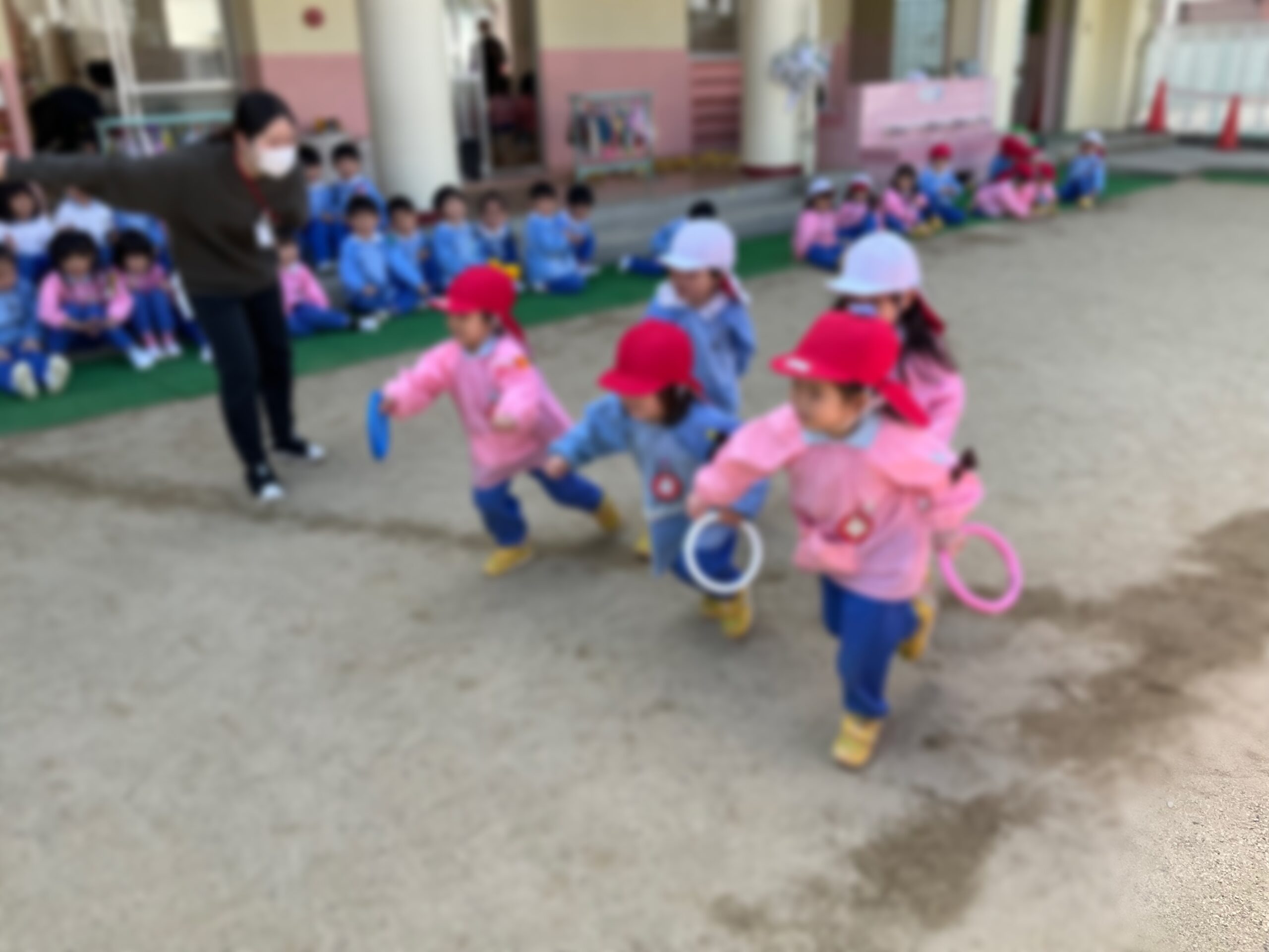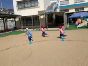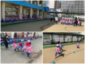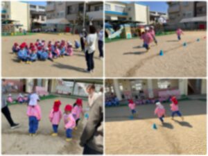 初めてのリレーでしたが、しっかりコースを走り、同じクラスのお友達にバトンを回して
