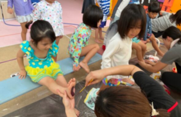 お誕生日会では絵の具の導入をし子ども達も興味深々👦🏻