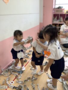 7月 07 2023 未分類 2歳、満3歳 今週の様子 子ども達の大好きな新聞遊び⭐️ めろん組さんパズル遊び🍈ちょっぴり難しかったかな? お友達と相談して頑張っていましたよ。 年中さんの七夕の飾りやお話を見に行ってきました🎋 大型紙芝居 3匹のこぶた🐽 避難訓練(地震) 未分類 年中 今週の様子🎋 年長 今週の保育👑