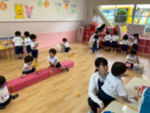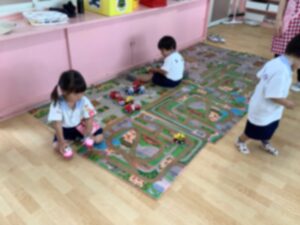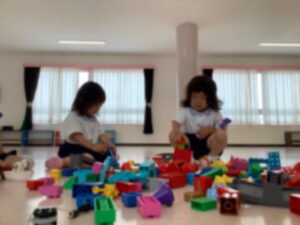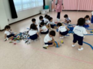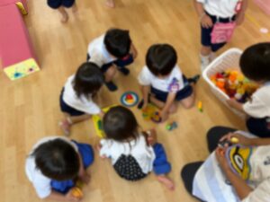 大きなホールでおもちゃ遊びをしました♪