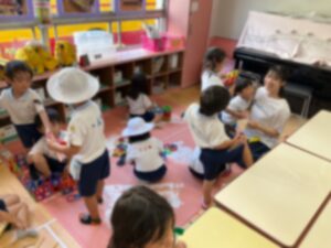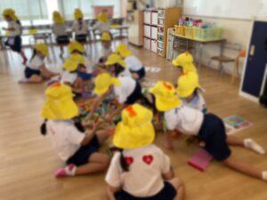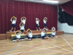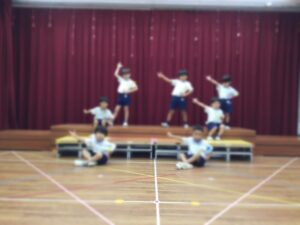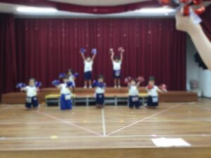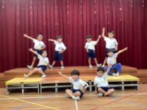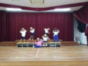 本番で使う小道具を持って元気いっぱい踊っていました。